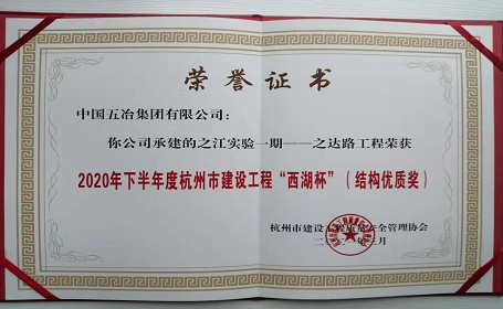之江實驗一期-之達路工程—2020年下半年度杭州市建設(shè)工程”西湖杯“(結(jié)構(gòu)優(yōu)質(zhì)獎)