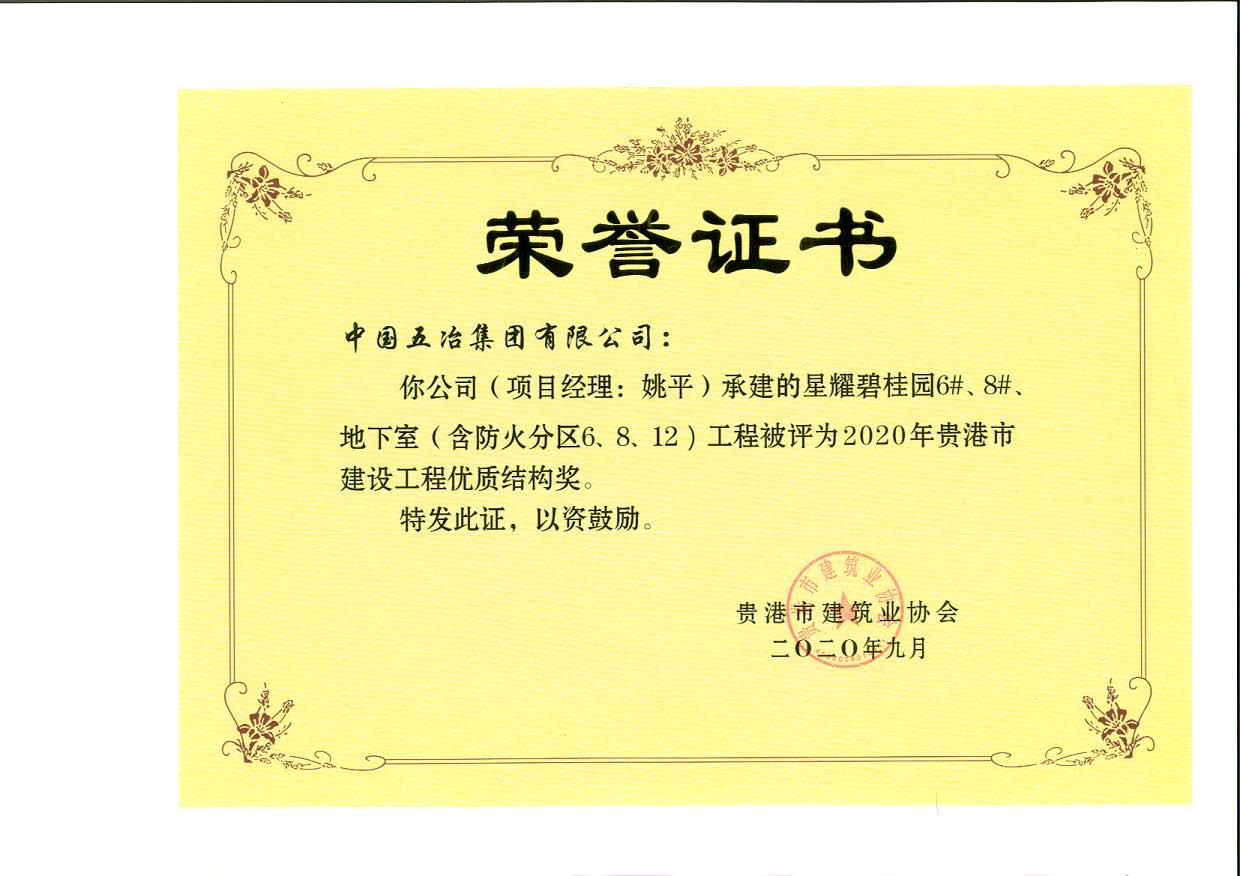星耀碧桂園6#、8#、地下室工程—2020年貴港市建設(shè)工程優(yōu)質(zhì)結(jié)構(gòu)獎
