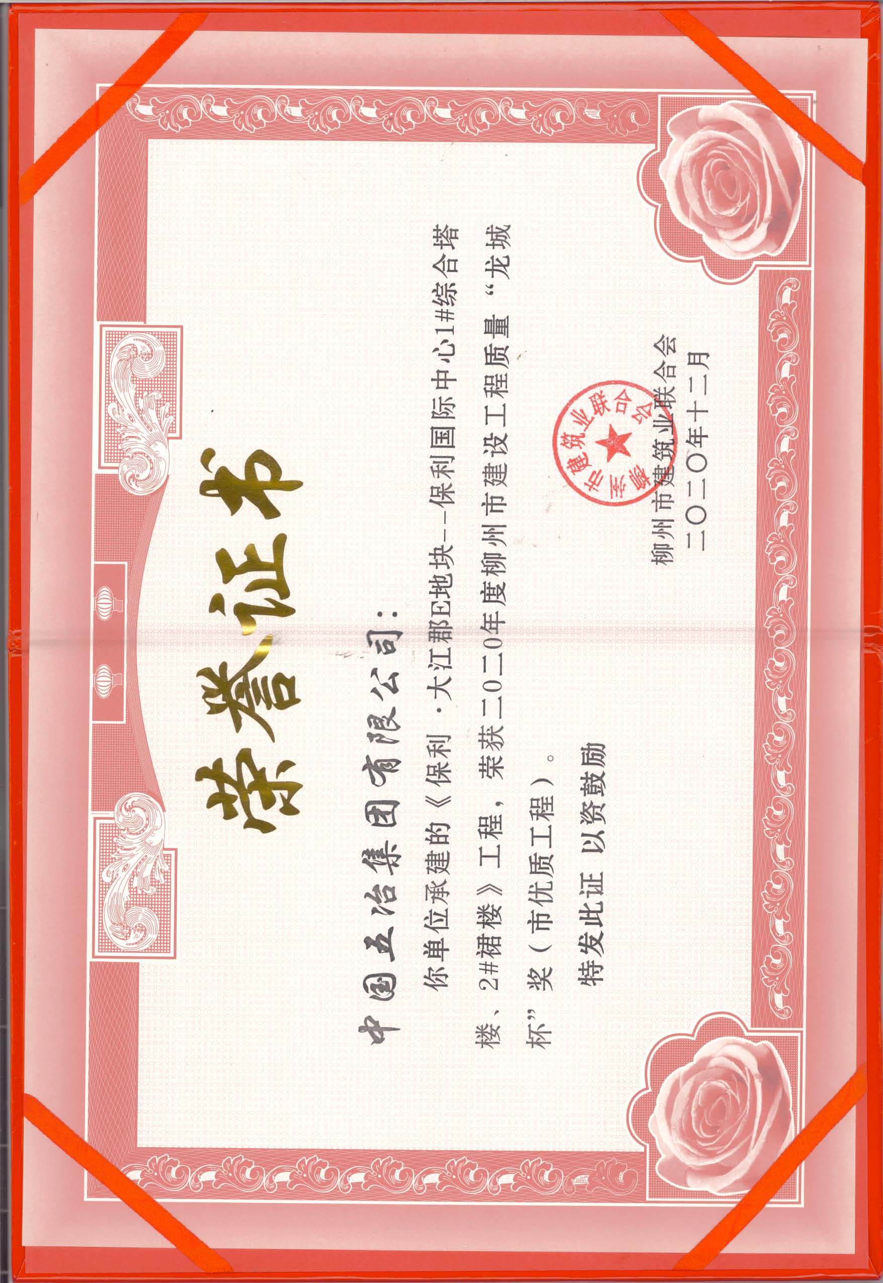 保利.大江郡E地塊-保利國際中心1#綜合塔樓、2#裙樓工程—2020年柳州市建設(shè)工程質(zhì)量龍城杯獎