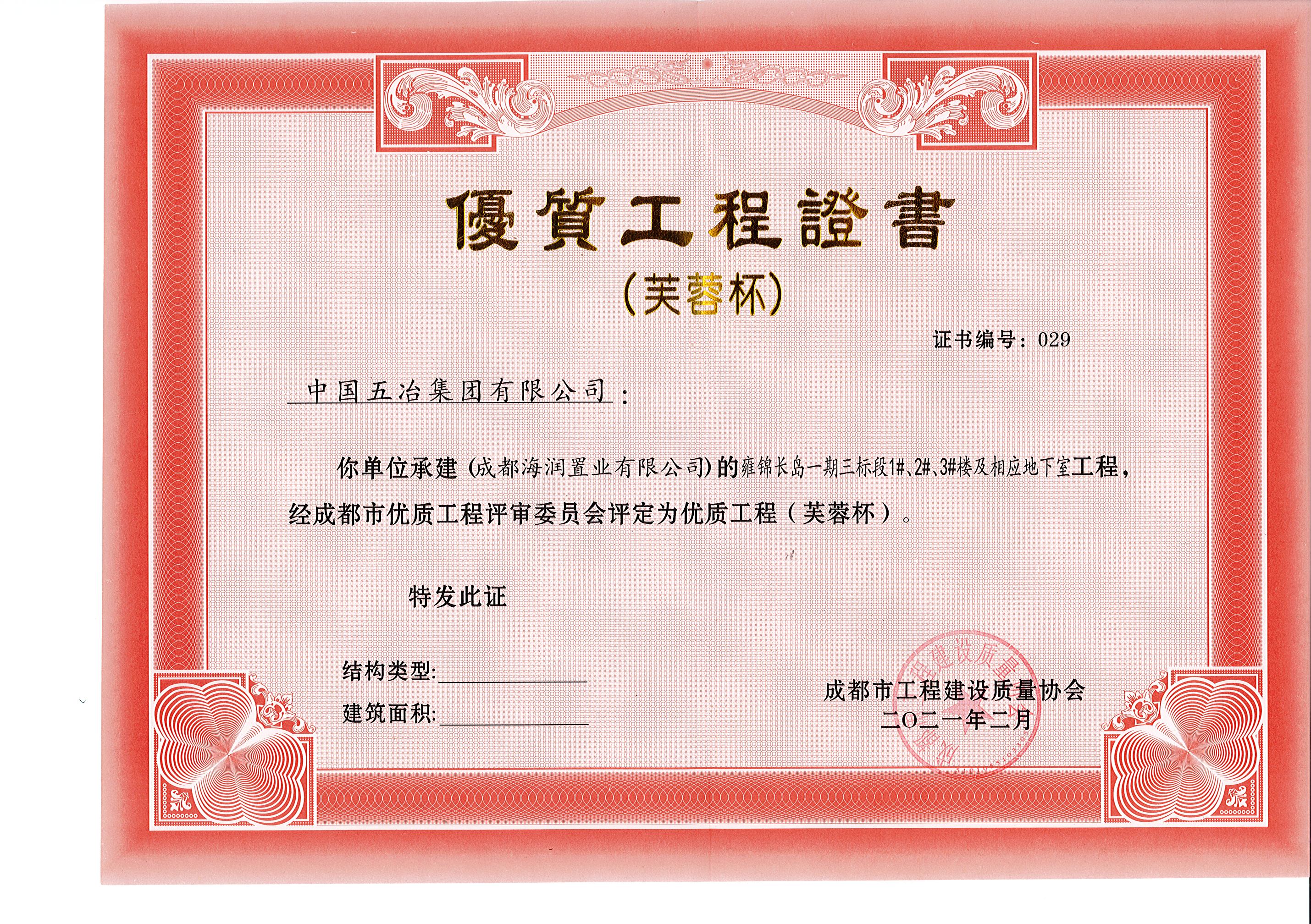 雍錦長島一期三標段1#、2#、3#樓及相應(yīng)地下室工程—2020年成都市芙蓉杯