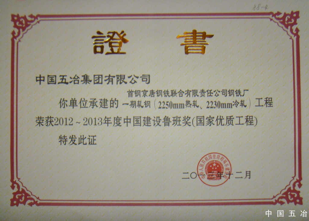 首鋼京唐冷軋一期軋鋼(2250mm熱軋、2230mm冷軋)工程-魯班獎(jiǎng)