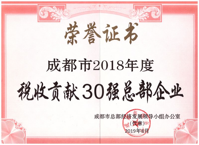 成都市2018年度稅收貢獻(xiàn)30強(qiáng)總部企業(yè)