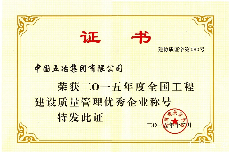 全國工程建設(shè)質(zhì)量管理優(yōu)秀企業(yè)