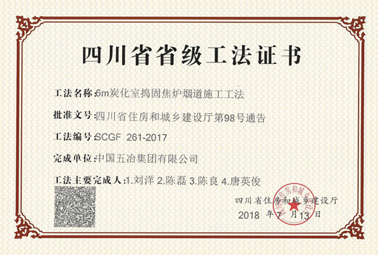 6M炭化室搗固焦?fàn)t煙道施工工法 SCGF 261-2017