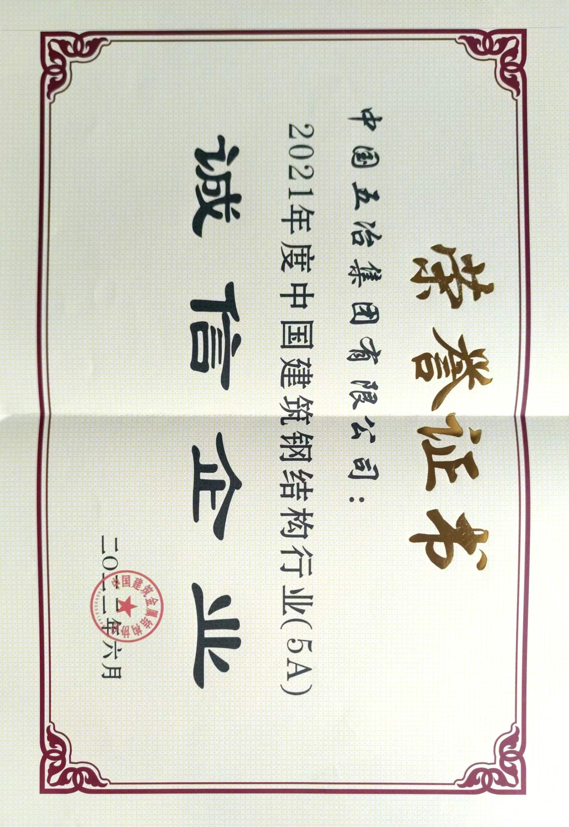 中國建筑鋼結構行業(yè)誠信企業(yè)