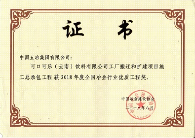 可口可樂(云南)飲料有限公司工廠搬遷和擴建項目施工總承包安裝工程-2018年度全國冶金行業(yè)優(yōu)質工程獎
