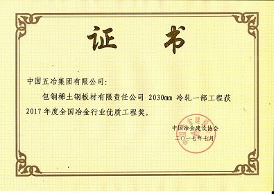 包鋼稀土鋼板材有限責任公司2030mm冷軋一部工程-2017年度全國冶金行業(yè)優(yōu)質工程獎
