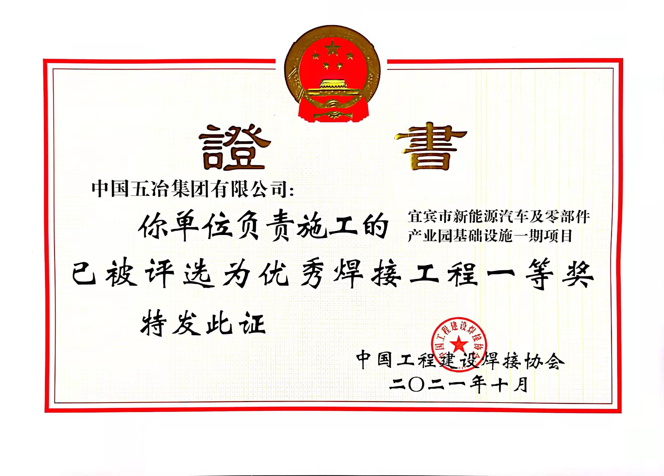宜賓市新能源汽車及零部件產業(yè)園 基礎設施一期項目-2021年度全國優(yōu)秀焊接工程一等獎