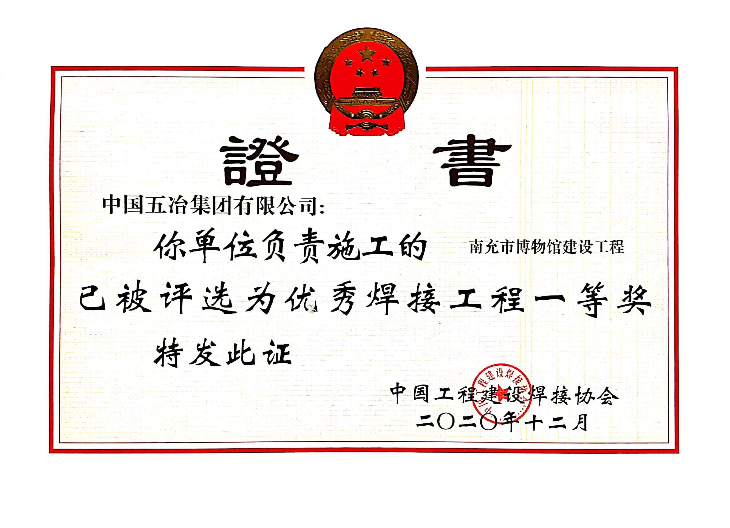南充市博物館建設工程-2020年度全國優(yōu)秀焊接工程一等獎