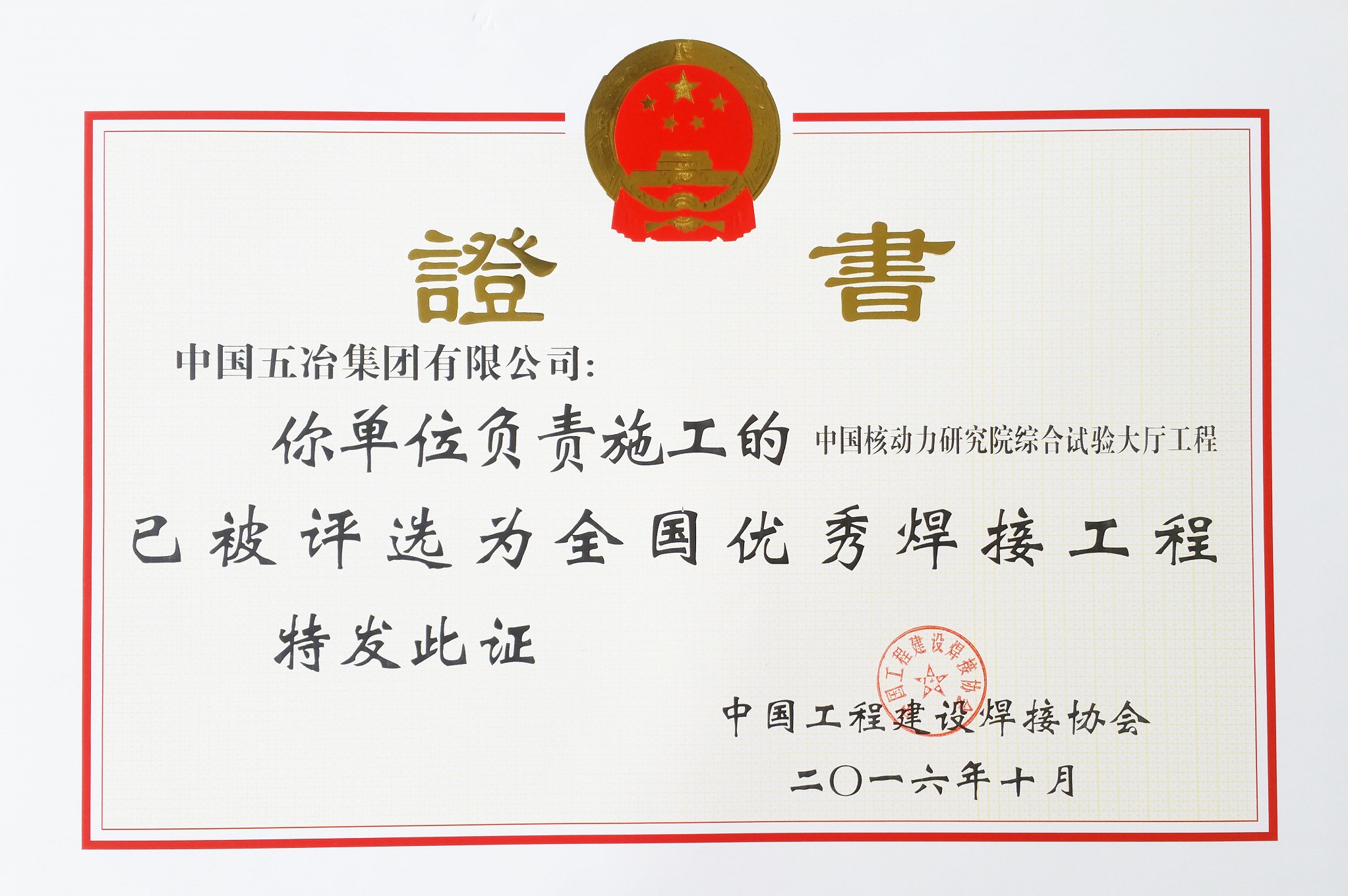 中國核動力研究院綜合試驗大廳工程-2016年度全國優(yōu)秀焊接工程獎