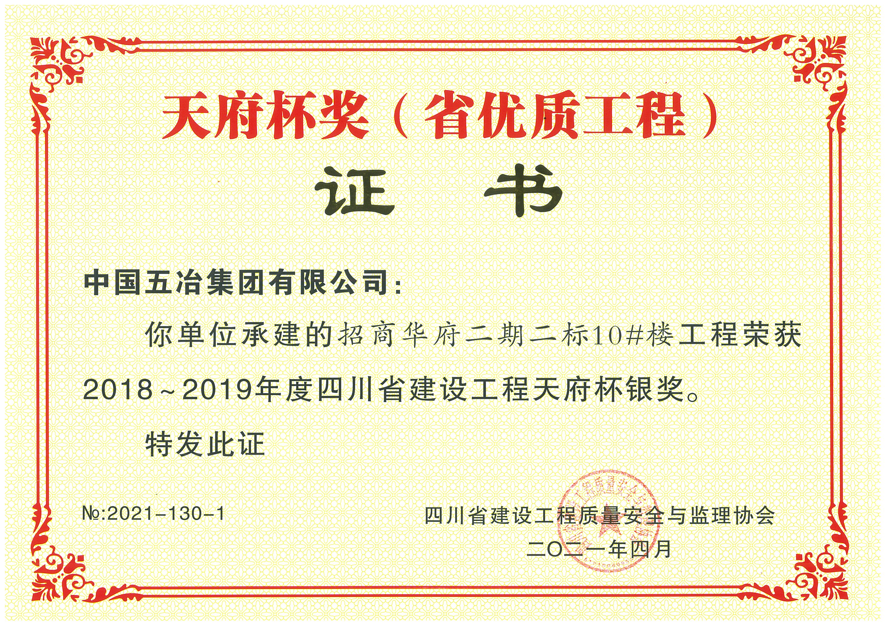 招商華府二期二標10#樓工程-2018-2019年度天府杯銀獎