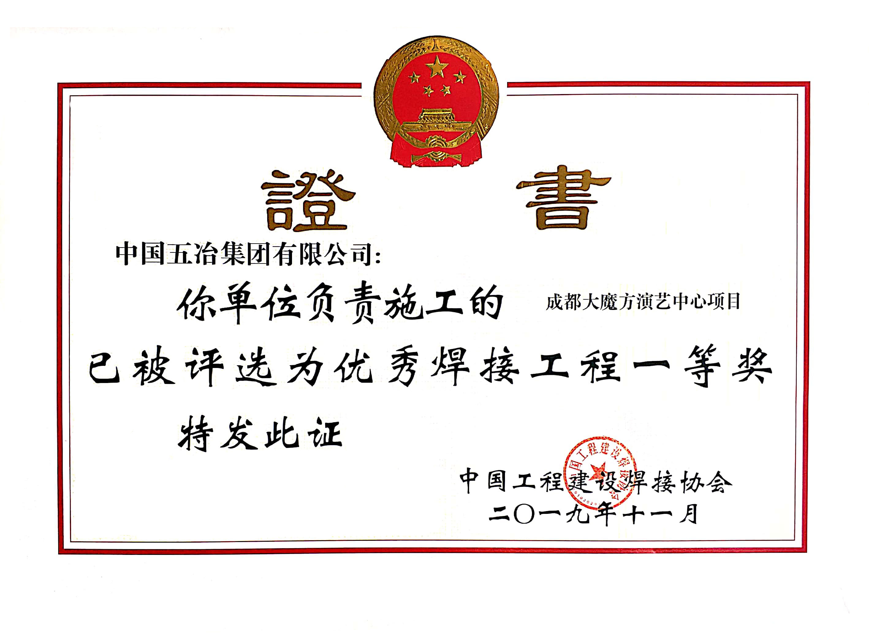 成都大魔方演藝中心項目-2019年度全國優(yōu)秀焊接工程一等獎