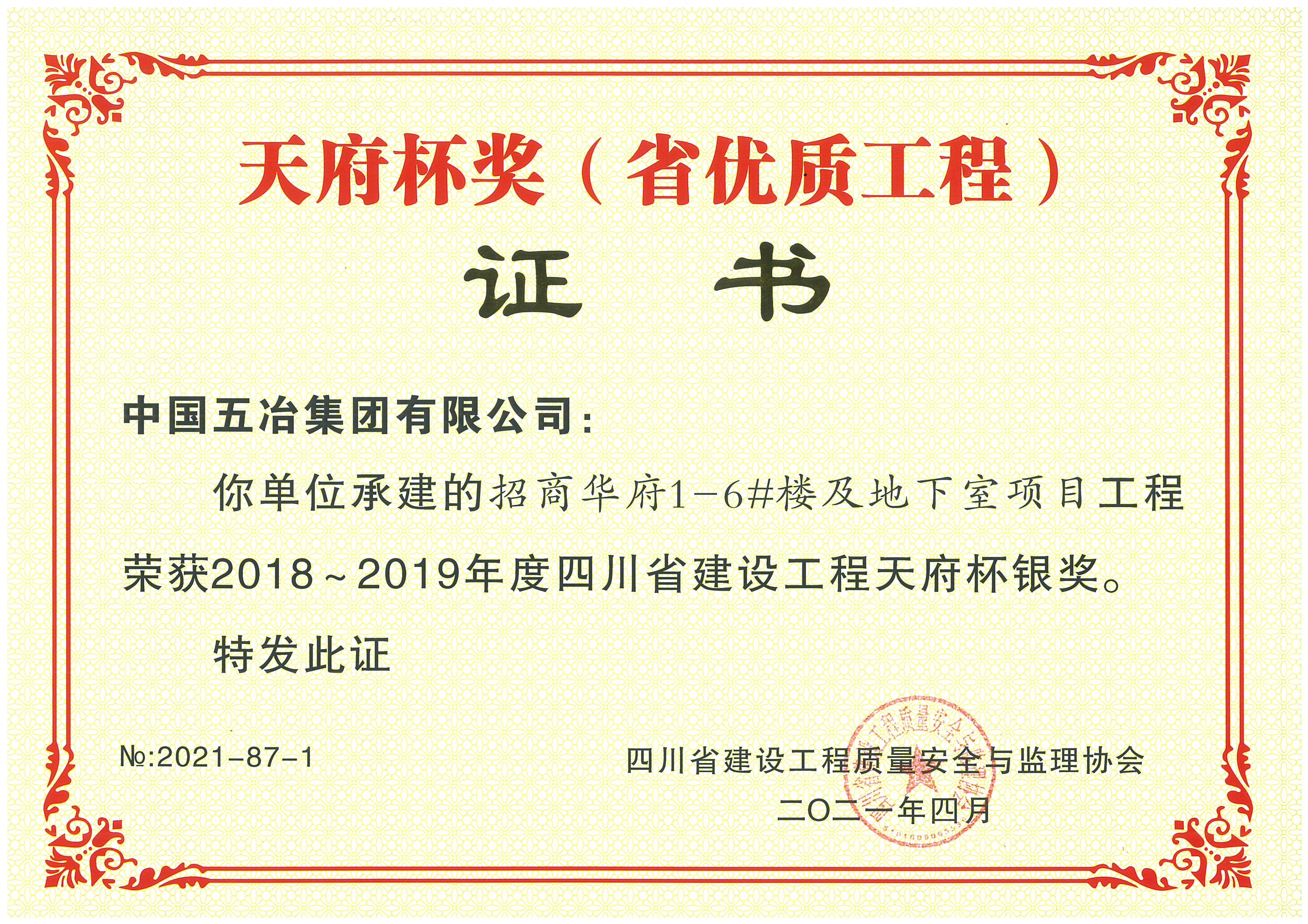 招商華府1-6#樓及地下室項目-2018-2019年度四川省天府杯銀獎