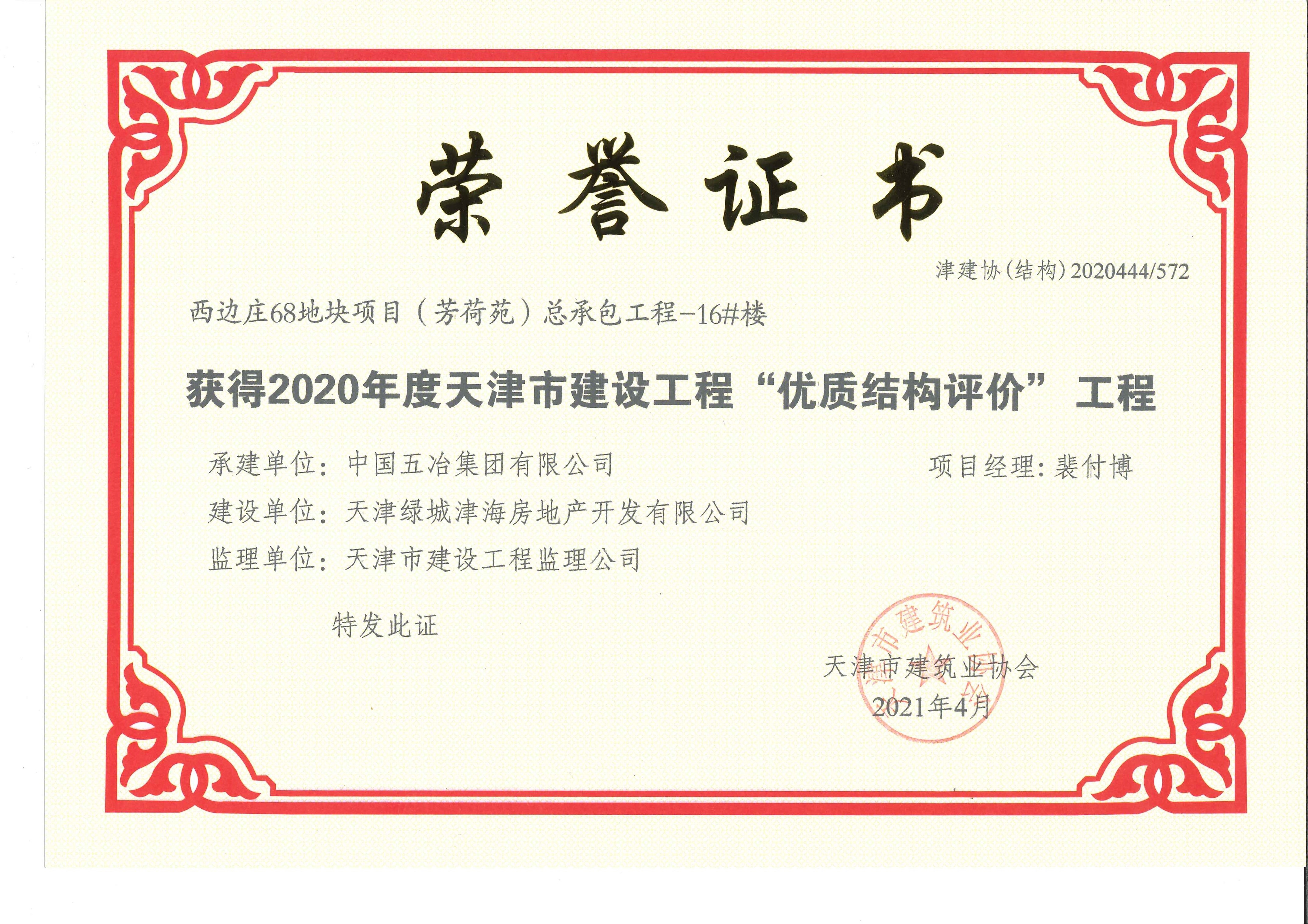 天津靜海綠城(西邊莊68地塊項目-芳荷苑總承包工程-16號樓)--2020年天津優(yōu)質(zhì)結(jié)構(gòu)評價