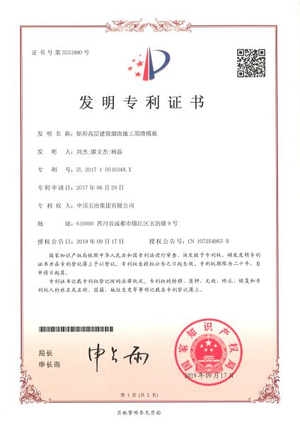 矩形高層建筑煙囪施工用滑模板 ZL201710516348.X