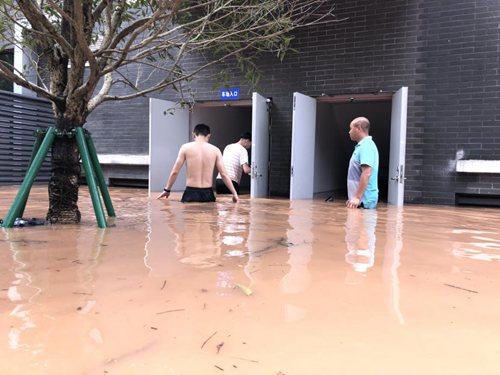 8月24日凌晨1點(diǎn),樂(lè)山再次突發(fā)強(qiáng)降雨,新廣場(chǎng)公廁由于地勢(shì)較低,進(jìn)水嚴(yán)重?!拔覀兞⒓窗才泡^近的新廣場(chǎng)停車場(chǎng)項(xiàng)目部趕去支援該公廁,連夜配送了20個(gè)防洪沙袋,并帶領(lǐng)工作人員在新廣場(chǎng)公廁入口構(gòu)筑防洪堤,確保把強(qiáng)降雨給項(xiàng)目帶來(lái)的損失降到最低?!表?xiàng)目負(fù)責(zé)人說(shuō)。