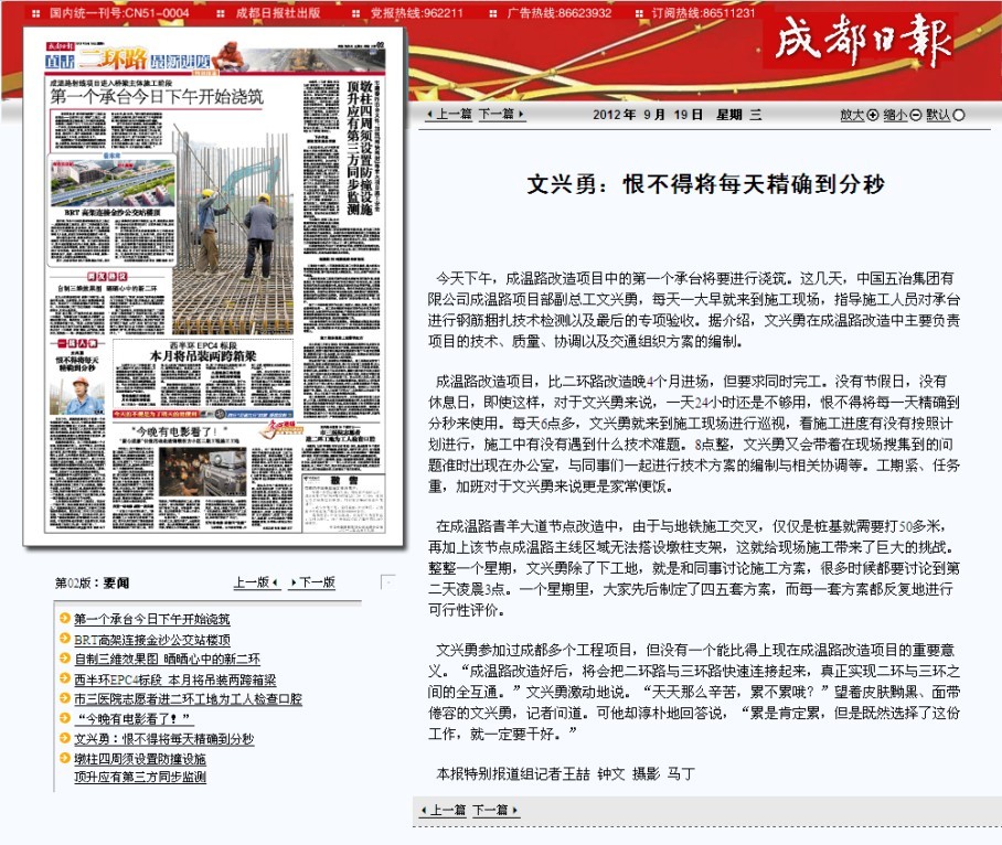 成都日報報道:文興勇:恨不得將每天精確到分秒