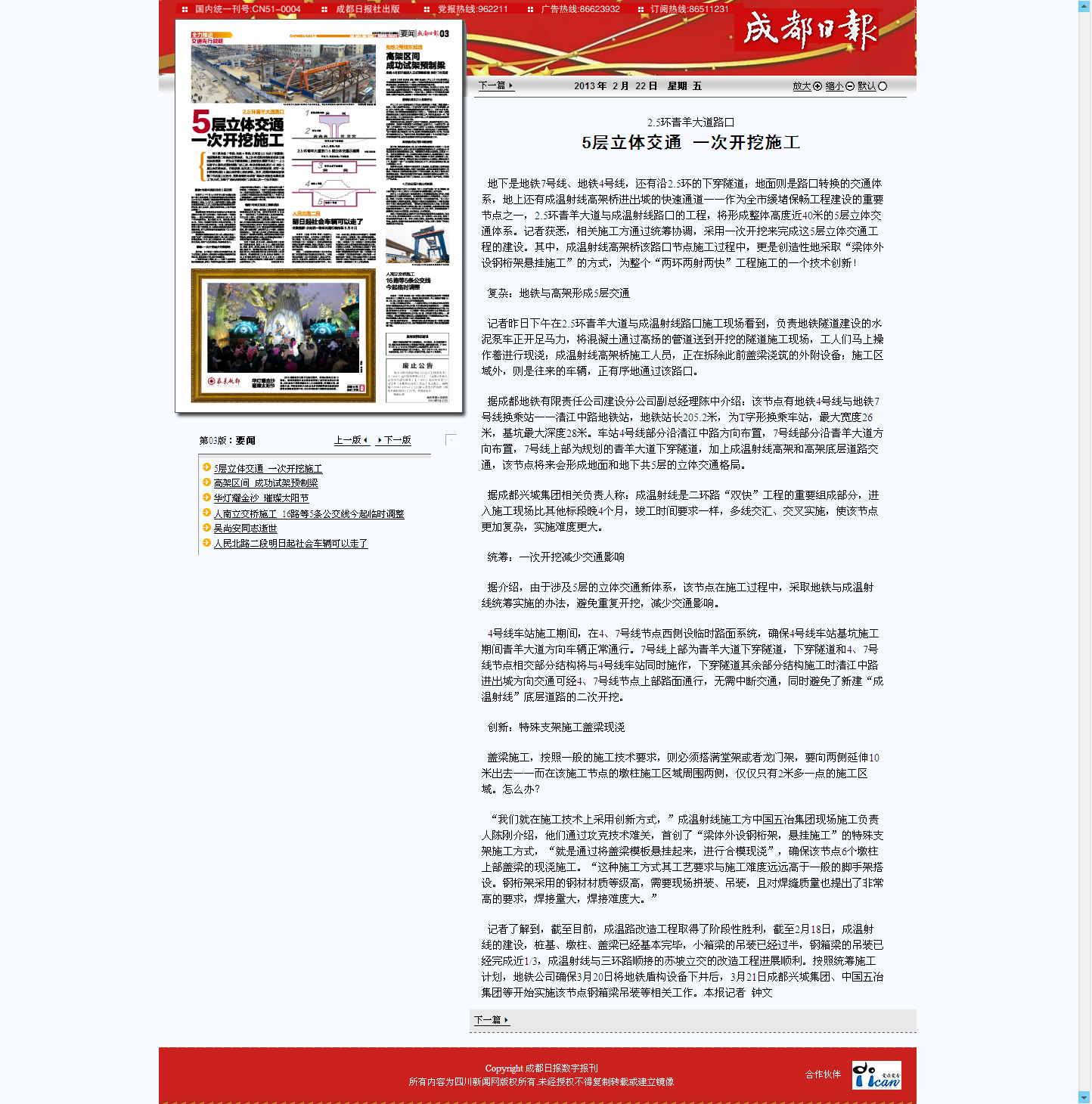 下一篇:成都晚報(bào)報(bào)道:2.5環(huán)與成溫射線交叉口5層道路同時(shí)修建,地面還不能斷道 成都首...