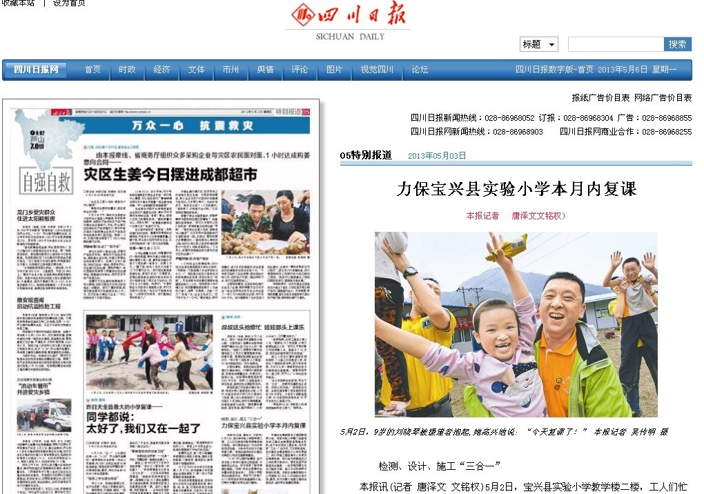 中國五冶集團副總工程師唐世榮介紹,目前實驗小學整個加固項目的工程處在前期排查隱患點階段。由于本次項目工期緊急,這次采取“三合一”的方式,三方同時進場,由中國五冶集團第四分公司負責施工,四川節(jié)能工程檢測中心負責安全隱患檢測,四川省天辰建筑設計公司負責方案設計。首先全面評估排查安全隱患,一旦發(fā)現問題立馬設計解決方案,施工方立即按照方案進行修復。目前五冶集團第四分公司首批60名工人已經到達寶興縣。據悉,本月內整個加固工程將全面完成,屆時學生能重回課堂。