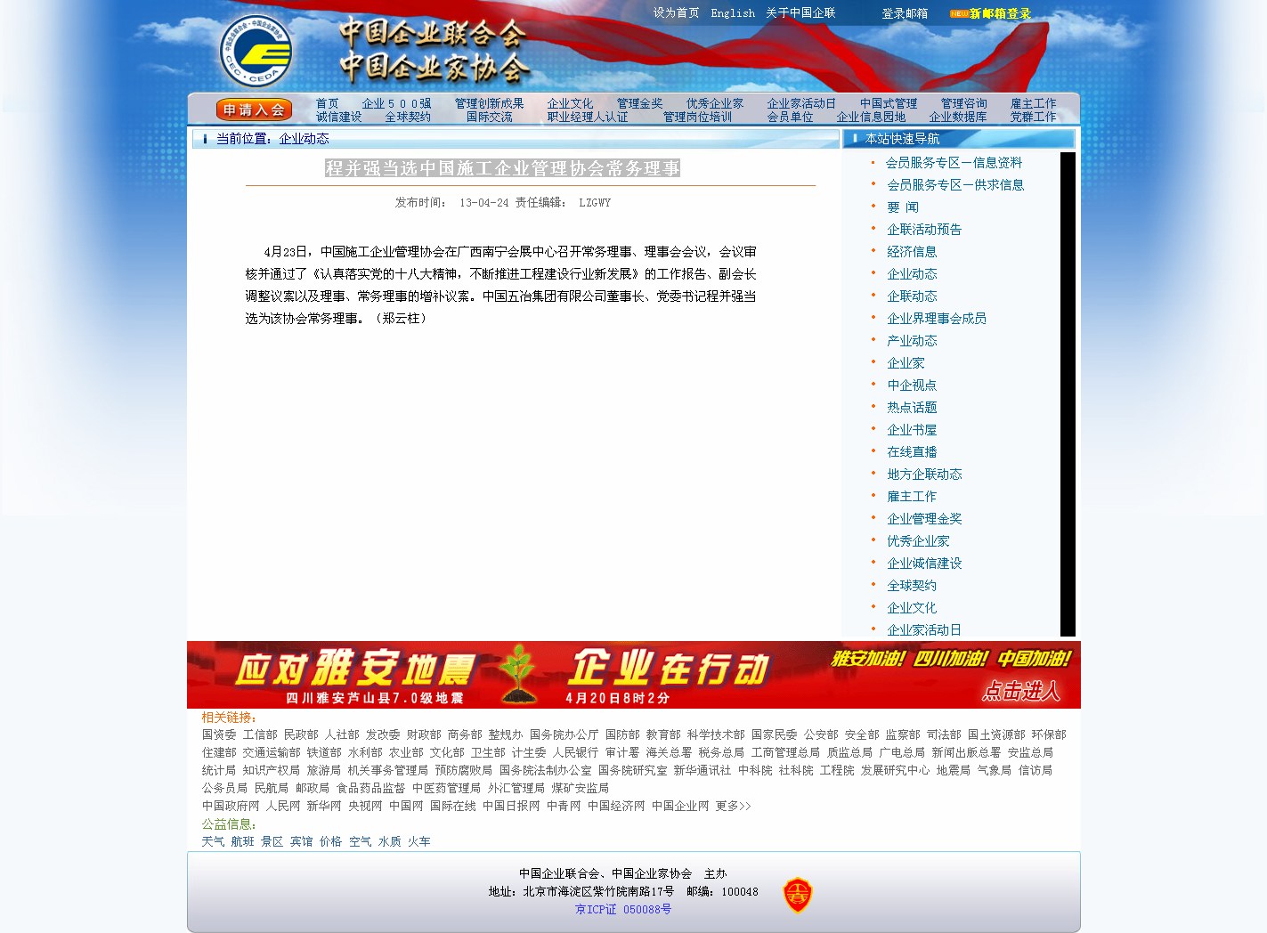 上一篇:中國(guó)企業(yè)聯(lián)合會(huì)網(wǎng)報(bào)道:中國(guó)五冶集團(tuán)兩名建筑結(jié)構(gòu)專(zhuān)家支援“蘆山”地震災(zāi)區(qū)