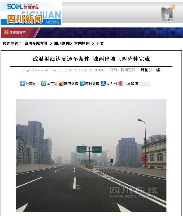 上一篇:天府早報(bào)報(bào)道:成溫路射線有望提前至月底通車