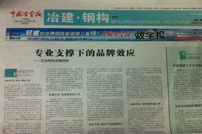 8月9日,《中國冶金報》05版以“專業(yè)支撐下的品牌效應(yīng)”為題,從轉(zhuǎn)變思路,迎來破繭重生;苦練內(nèi)功,催開轉(zhuǎn)發(fā)展之花;技術(shù)先行,張專業(yè)化之翼;優(yōu)化產(chǎn)品,提升產(chǎn)品經(jīng)營層次;拓展市場,馳騁海內(nèi)贏口碑等五個方面,刊文報道了中國五冶集團鋼結(jié)構(gòu)產(chǎn)業(yè)發(fā)展概況,對中國五冶鋼構(gòu)專業(yè)化支撐品牌發(fā)展的情況進行了詳細梳理。