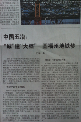7月2日,《建筑時報》第3233期第八版營造板塊以《“誠”建“大腦”?圓福州地鐵夢》為題,從“待業(yè)主‘誠’在全力服務”、“對社會‘誠’在用心溝通”、“攜團隊‘誠’在團結(jié)奉獻”三個層面對中國五冶承建的福州地鐵指揮中心工程的建設過程進行了如實報道。