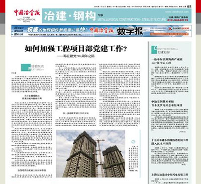 7月3日,中國(guó)冶金報(bào)第5版(冶建?鋼構(gòu)專版)報(bào)道:由五冶集團(tuán)上海有限機(jī)械化公司承建的云南昆明昆鐵家園一標(biāo)段住宅小區(qū)工程A棟主體結(jié)構(gòu)封頂,比業(yè)主要求工期提前將近1個(gè)月時(shí)間。項(xiàng)目部狠抓管理,確保施工的進(jìn)度、安全、質(zhì)量。標(biāo)志著機(jī)械化公司的市政、交通、民建產(chǎn)品的經(jīng)營(yíng)能力有新的提升。