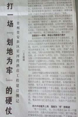 4月2日,建筑時(shí)報(bào)第3207期第六版以《打一場“劃地為牢”的硬仗》為題,從“頂層設(shè)計(jì)一根線,串起公司層層萬條針”、“四大件標(biāo)配齊上陣,劃地為‘牢’創(chuàng)奇跡”、“在速度與轉(zhuǎn)型中演繹冰火之歌”三個(gè)層面對中國五冶承建的貴州貴安新區(qū)星河灣酒店的建設(shè)過程進(jìn)行了如實(shí)報(bào)道。