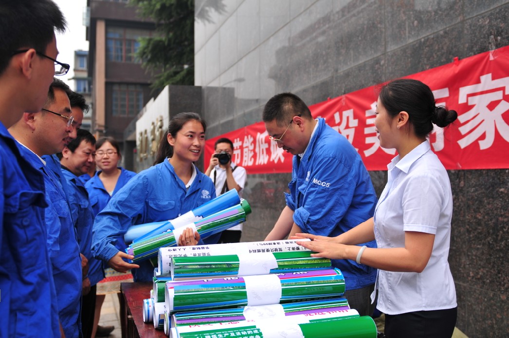 宣傳活動現(xiàn)場對各單位贈送了節(jié)能減排宣傳掛圖,并要求各單位要面向一線進(jìn)行廣泛宣傳,隨后還開展了節(jié)能減排承諾簽名活動,公司職工及過路市民積極響應(yīng),排隊簽名承諾,隨后工作人員派發(fā)了中國五冶集團(tuán)有限公司特制的倡導(dǎo)低碳綠色生活的環(huán)保宣傳袋,受到廣大職工和市民的歡迎。