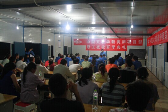 9月1日,在這個全國大大小小學(xué)校開學(xué)的日子,一公司華新美廬項目部職工夜校也迎來了第一批“學(xué)生”。晚上七點半,華新美廬項目部管理人員、民工,一公司黨群部、安全部、人力資源部代表共七十余人著工裝整齊入場,華新美廬項目部“職工夜?!遍_學(xué)典禮拉開了序幕。