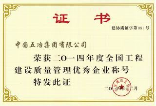 ??2015年2月,中國五冶集團有限公司榮獲2014年度全國工程建設(shè)質(zhì)量管理優(yōu)秀企業(yè)稱號。