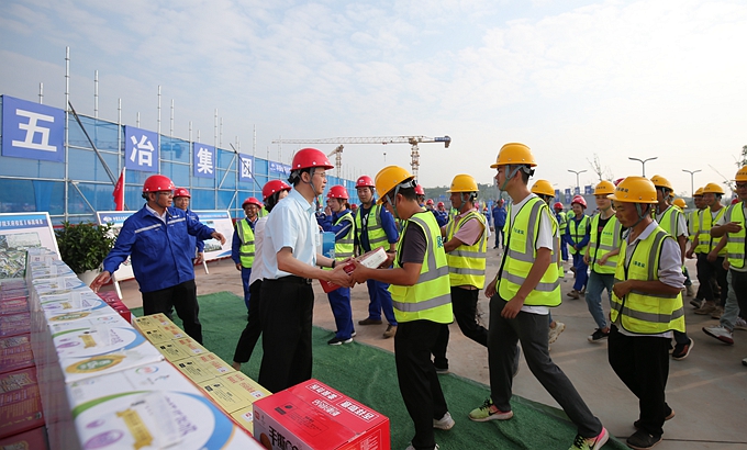 10月1日國慶節(jié),中國五冶集團(tuán)黨委書記、董事長朱永繁一行到項(xiàng)目慰問并帶班檢查。集團(tuán)公司領(lǐng)導(dǎo)周悅靜、萬明海、譚興山、楊林源、張剛,相關(guān)非班子高管、副三總師、安全總監(jiān),生產(chǎn)經(jīng)營部門及黨群工作部、辦公室負(fù)責(zé)人,四川地區(qū)各單位總經(jīng)理,分管履約、經(jīng)營副總經(jīng)理,簡陽片區(qū)項(xiàng)目經(jīng)理等參加活動(dòng)。