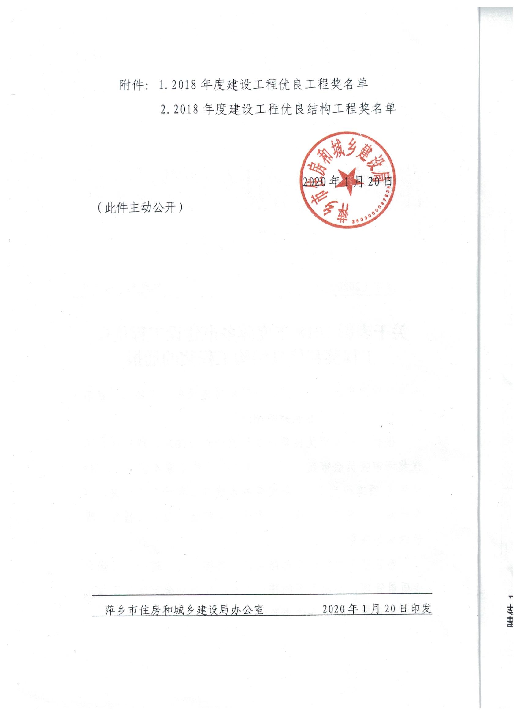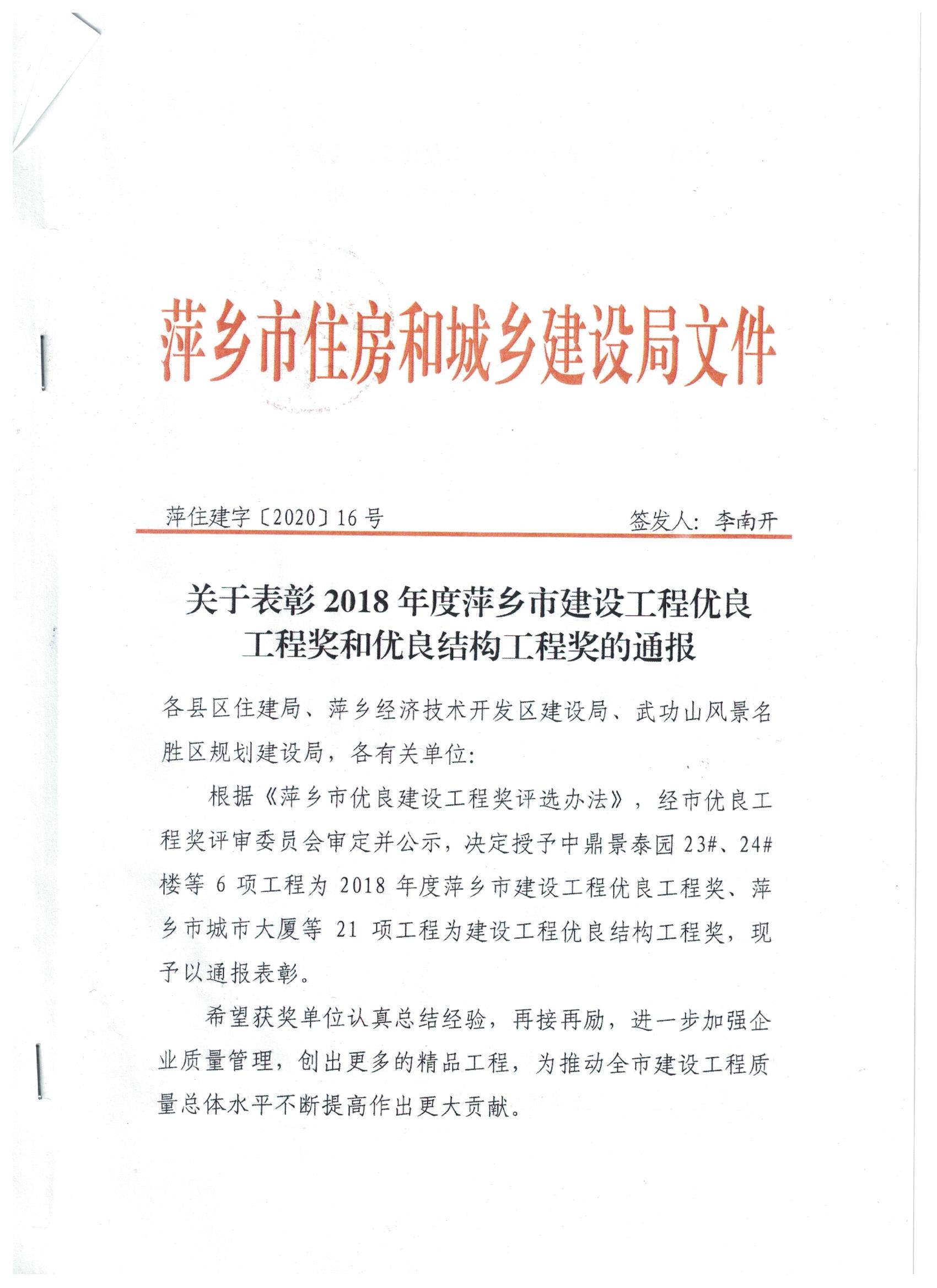 上栗縣城鎮(zhèn)化基礎(chǔ)設(shè)施建設(shè)PPP項(xiàng)目縣北工業(yè)園標(biāo)準(zhǔn)化廠房工程榮獲2018年度萍鄉(xiāng)市建設(shè)工程優(yōu)良結(jié)構(gòu)工程獎(jiǎng)