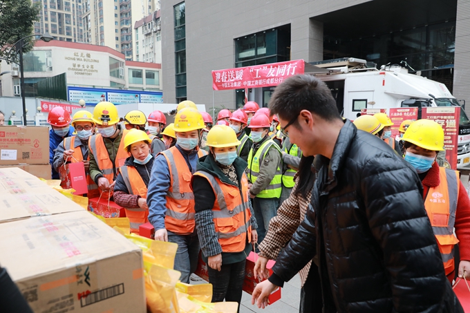 活動期間,工友們在工行成都分行移動服務(wù)柜臺前有序排隊,辦理了銀行卡、工資存取、轉(zhuǎn)賬匯款、理財咨詢等業(yè)務(wù)。此外,工友們還收到了米、油等新年大禮包,參加了可購買火車票的微信立減金抽獎等活動。參加活動的工友紛紛表示,平時大伙兒在工地干活忙,沒時間到銀行辦理業(yè)務(wù),現(xiàn)在流動銀行車開到工地,給工友們帶來了很多方便。