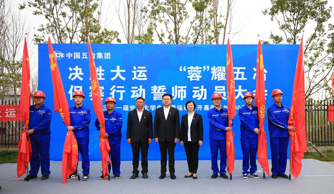 為做好大運(yùn)會(huì)各項(xiàng)保賽準(zhǔn)備工作,確保大運(yùn)會(huì)圓滿成功,3月18日,第31屆世界大學(xué)生夏季運(yùn)動(dòng)會(huì)倒計(jì)時(shí)100天之際,中國五冶集團(tuán)在大運(yùn)會(huì)主會(huì)場(chǎng)東安湖公園召開“決勝大運(yùn)‘蓉’耀五冶”保賽行動(dòng)誓師動(dòng)員大會(huì)。集團(tuán)公司領(lǐng)導(dǎo)陳陽、周悅靜、譚興山,保賽領(lǐng)導(dǎo)小組成員,相關(guān)參建單位專職副書記、施工副總經(jīng)理,保賽黨員服務(wù)隊(duì)成員等參加活動(dòng)。