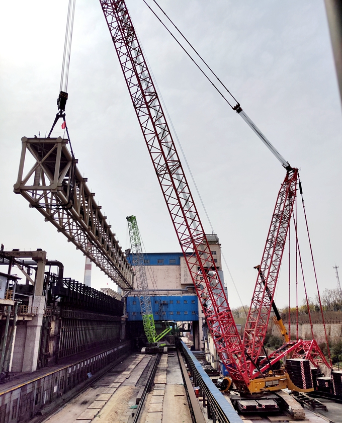 此次吊裝中的兩臺800噸履帶吊雙機(jī)抬吊焦?fàn)t大棚超重桁架長距離帶負(fù)荷行走是全國首次,毫無可借鑒的經(jīng)驗(yàn)。在總部機(jī)關(guān)支撐保障和項(xiàng)目部精心組織下,兩臺大型履帶吊順利完成包括起鉤、抬吊負(fù)載行走、跨過滑觸線、空中繞桁架、起吊就位、摘鉤等多個(gè)高難度動(dòng)作,同時(shí)在兩臺汽車吊的輔助下順利完成了穿鋼絲繩、鋪路基板、增超起配重、取鋼絲繩等工作。接下來,項(xiàng)目團(tuán)隊(duì)將持續(xù)科學(xué)謀劃,抓好安全生產(chǎn),搞好施工質(zhì)量,將河北華豐焦?fàn)t煙氣治理項(xiàng)目打造成經(jīng)得起考驗(yàn)的精品工程、示范工程,在業(yè)界樹立良好的豐碑,向業(yè)主交一份滿意的答卷。(趙洪浩)
