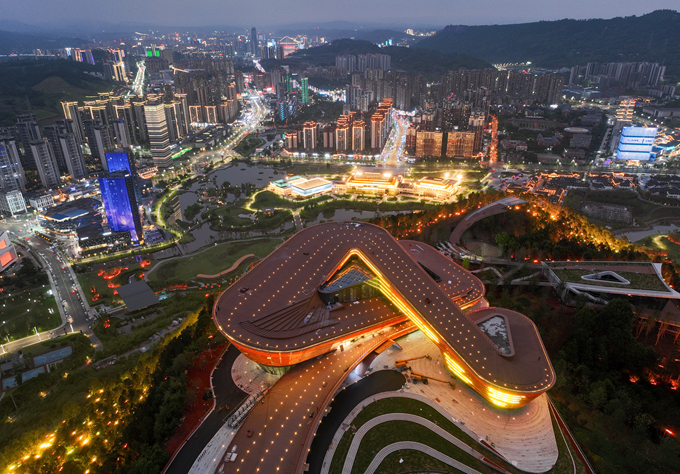 三江之眼項(xiàng)目位于四川宜賓三江新區(qū)龍頭山,是集城市會(huì)客、休閑觀光、科普教育、生態(tài)研學(xué)為一體城市會(huì)客廳,也是見證三江新區(qū)和中心城區(qū)“雙城”有機(jī)生長(zhǎng)的“城市之眼”。項(xiàng)目在幕墻施工中通過BIM技術(shù)精細(xì)建立模型,深化鋼結(jié)構(gòu)應(yīng)用,參數(shù)化控制建筑材料,確保宛如絲帶的“莫比烏斯環(huán)”在城市地標(biāo)中完美呈現(xiàn)。