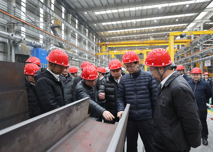朱永繁董事長(zhǎng)一行首先來到龍泉驛城市更新和簡(jiǎn)陽土地綜合治理兩個(gè)項(xiàng)目現(xiàn)場(chǎng),簡(jiǎn)要聽取項(xiàng)目負(fù)責(zé)人匯報(bào),了解工程概況、工期進(jìn)度、策劃編制及執(zhí)行、履約管理等方面情況;隨后,他來到中國(guó)五冶集團(tuán)建筑科技產(chǎn)業(yè)園,實(shí)地查看裝配式混凝土生產(chǎn)線、全自動(dòng)智能化鋼結(jié)構(gòu)生產(chǎn)線運(yùn)轉(zhuǎn)情況,不時(shí)與相關(guān)負(fù)責(zé)人交流,詢問工藝和質(zhì)量管控細(xì)節(jié)。朱永繁董事長(zhǎng)代表集團(tuán)公司向新春佳節(jié)期間奮戰(zhàn)在一線的廣大員工、合作伙伴及各位工友表示敬意和感謝,祝大家春節(jié)快樂,幸福安康,同時(shí)要求大家安排好節(jié)日?qǐng)?jiān)守期間的生活。
