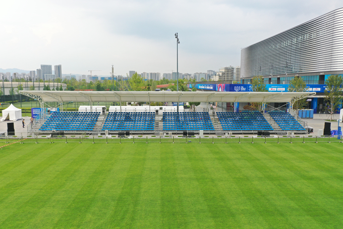 世運會射箭、拔河等比賽觀眾席設置在成都東安湖體育公園中央廣場、青龍湖濕地公園,超1萬名海內外觀眾在這里吶喊歡呼。為支撐世運會觀賽需求,五冶建設者掛圖作戰(zhàn),倒排工期,全力以赴,攻堅克難,在7天之內完成了964平方米棚蓋建設,覆蓋1060個看臺席位,全部采用裝配式鋼結構施工,最大限度降低對公園生態(tài)環(huán)境影響,賽后可快速拆除回收利用,做到安全環(huán)保。