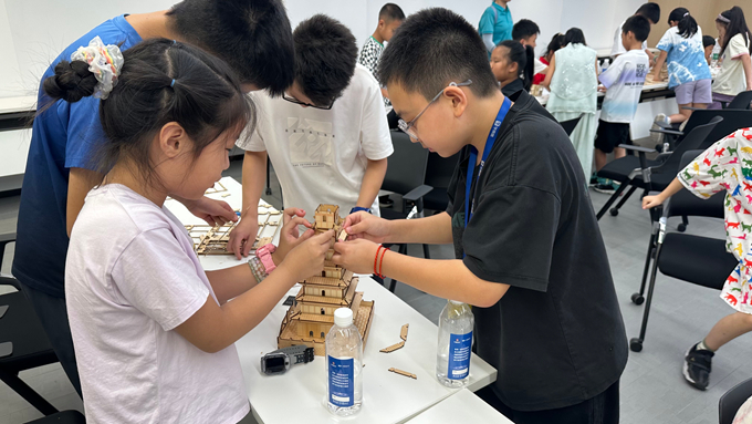 活動(dòng)當(dāng)天,現(xiàn)場(chǎng)工作人員帶領(lǐng)孩子和工友們走進(jìn)中國(guó)五冶集團(tuán)科技中心大廈,沿著精心設(shè)計(jì)的路線(xiàn),深度探索這座零碳建筑的“科技密碼”,大家觀(guān)看了中國(guó)五冶集團(tuán)自主研發(fā)的建筑智慧低碳運(yùn)維系統(tǒng),并參觀(guān)了多個(gè)頂級(jí)科學(xué)家領(lǐng)銜的創(chuàng)新工作室和建筑工業(yè)化與智能建造、城市更新、智慧機(jī)電、公園城市、綠色與智慧巖土等八大工程技術(shù)研究中心,全方位體驗(yàn)了零碳建筑的科技魅力。參觀(guān)結(jié)束后,“裝配式建筑科普講座”精彩開(kāi)講,工作人員通過(guò)生動(dòng)的圖文視頻,深入淺出地講解了裝配式建筑與傳統(tǒng)建筑的區(qū)別,帶領(lǐng)大家穿越不同歷史時(shí)期,感受裝配式建筑的發(fā)展脈絡(luò),了解裝配式建筑的諸多優(yōu)點(diǎn)和未來(lái)發(fā)展前景,讓孩子們對(duì)裝配式建筑有了全新的認(rèn)知。隨后,“趣味小試驗(yàn)”環(huán)節(jié)將活動(dòng)推向高潮,孩子們每4人被分成1個(gè)小組,展開(kāi)了一場(chǎng)緊張而歡樂(lè)的“建筑搭建大比拼”,大家齊心協(xié)力,將零散構(gòu)件組建成精巧的建筑模型,優(yōu)先完成搭建的小組收獲了精美獎(jiǎng)品,現(xiàn)場(chǎng)歡聲笑語(yǔ)不斷?;顒?dòng)結(jié)束后,工作人員向全體兒童贈(zèng)送了文具用品并給予祝福,鼓勵(lì)他們好好學(xué)習(xí)、健康成長(zhǎng)。
