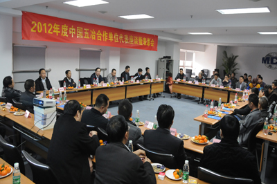 2月3日,中國(guó)五冶集團(tuán)召開2012年度合作單位代表座談暨表彰會(huì)。集團(tuán)公司領(lǐng)導(dǎo)蒙昌嘉、朱永繁、田舜,總經(jīng)理助理、副三總師,各分公司領(lǐng)導(dǎo),集團(tuán)公司相關(guān)各部門負(fù)責(zé)人,直屬項(xiàng)目部負(fù)責(zé)人,30家合作單位代表參加了此次座談會(huì)。會(huì)議由集團(tuán)公司副總經(jīng)理田舜主持。
