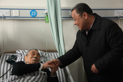在92歲高齡離休老干部邵佐病床前,程并強(qiáng)關(guān)切地對邵老說,“公司時(shí)刻惦記著你們,希望您老健康長壽”!他詳細(xì)了解了邵老的身體狀況,叮囑公司離退休管理部同志,要切實(shí)做好老同志的服務(wù)工作,關(guān)心他們的身體健康,解決他們的實(shí)際困難,把組織的溫暖及時(shí)送到他們身邊。”