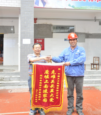 5月24日,縣實驗小學學生代表向參戰(zhàn)人員送來了感謝信,學校校長也向項目部送來了“危難關(guān)頭顯大愛,廢墟上面建家園”的錦旗。??????????(王成建)