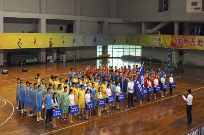 八點二十分,籃球聯(lián)賽進行開幕儀式。來自中國五冶集團的中冶成勘、一公司、四公司、機電公司、路橋公司、爐窯公司、鋼構(gòu)公司、房產(chǎn)公司、五冶醫(yī)院、教培中心、直屬機關(guān)等11支隊伍先后入場。