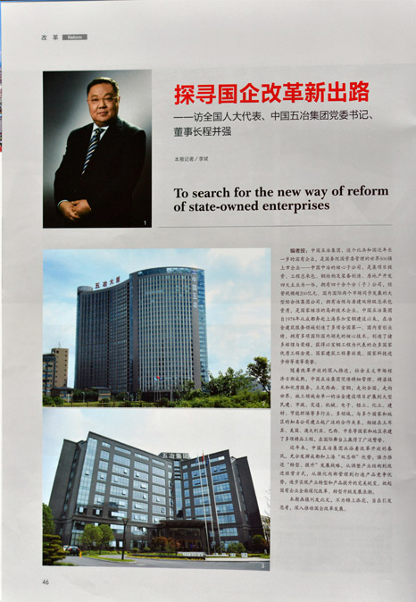 文章通過對全國人大代表,中國五冶集團(tuán)董事長、黨委書記程并強(qiáng)進(jìn)行專訪,圖文并茂,全面展現(xiàn)了中國五冶集團(tuán)的綜合實(shí)力、改革發(fā)展歷程、創(chuàng)新成果等。文章指出:近年來,中國五冶集團(tuán)沐浴著改革開放的春風(fēng),充分發(fā)揮成都和上?!半p總部”優(yōu)勢,強(qiáng)力推進(jìn)“轉(zhuǎn)型、提升”發(fā)展戰(zhàn)略,從調(diào)整產(chǎn)業(yè)結(jié)構(gòu)到改進(jìn)經(jīng)營方式,從強(qiáng)化內(nèi)部管理到打造產(chǎn)品競爭優(yōu)勢,逐步實(shí)現(xiàn)了產(chǎn)業(yè)轉(zhuǎn)型和產(chǎn)品提升的完美蛻變,掀起了國有企業(yè)全面深化改革、轉(zhuǎn)型升級(jí)的發(fā)展浪潮。