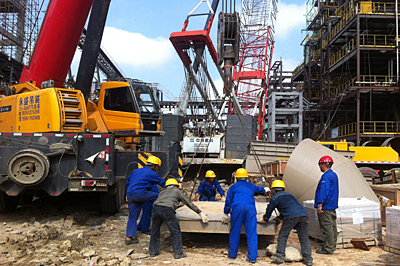 湛江鋼鐵基地項目的同事們正在吊裝設(shè)備