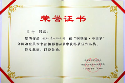 在中冶集團承辦的“鋼鐵情?中國夢”為主題的2014年全國冶金美術(shù)作品展活動中,我公司員工董玉竹、蘭娜、鄧超的3幅作品獲得最佳作品獎,6幅作品獲得優(yōu)秀作品獎。據(jù)了解,此次共有來自全國冶金系統(tǒng)的近500幅作品參加了展出,集團文化中心精心組織,挑選了一批優(yōu)秀作品參加展覽,這些美術(shù)攝影作品從藝術(shù)角度反映了“中國夢”與“美好中冶”的緊密關(guān)系,表現(xiàn)出了五冶人?“一天也不耽誤,一天也不懈怠”的奮斗精神,受到組委會的一致好評。(鄧超)?