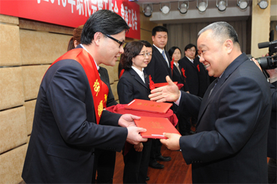當(dāng)各類先進(jìn)典型胸佩紅花、身系錦帶先后上臺(tái)接受表彰的時(shí)候,會(huì)場(chǎng)響起陣陣掌聲。公司領(lǐng)導(dǎo)親手為他們頒發(fā)獎(jiǎng)狀和大額獎(jiǎng)金,感謝他們?yōu)橹乒卷樌麑?shí)現(xiàn)“轉(zhuǎn)型、提升、擴(kuò)張”戰(zhàn)略目標(biāo)所做出的積極貢獻(xiàn)。光榮是屬于他們的,也是五冶人的,他們的辛苦付出是五冶發(fā)展的堅(jiān)強(qiáng)基石。