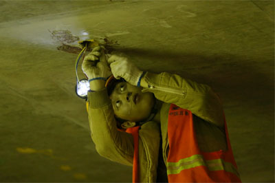 上海寶之云項目現(xiàn)場工施工工人正在對電氣設(shè)備檢修調(diào)試進行操作指揮